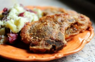 (I usually use kosher salt to season meat, but pork chops are just too down-home for that.)